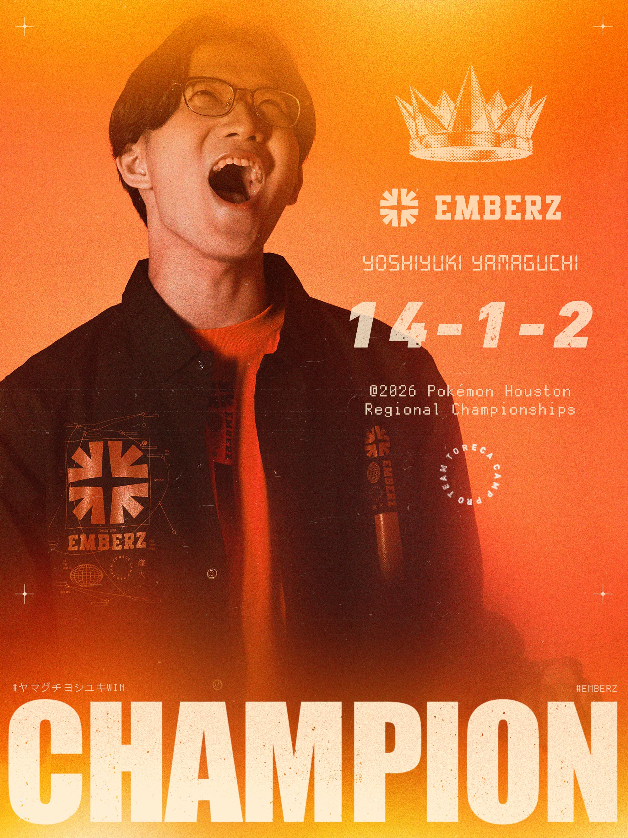 このたび、EMBERZ所属のヤマグチ ヨシユキ選手が、アメリカ・テキサス州ヒューストンにて開催された「2026 Pokémon Houston Regional Championships」において、見事優勝を果たしましたことをご報告いたします。
